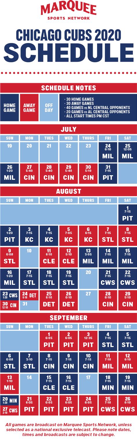 Web sun sun sun mon mon mon tue tue tue wed wed wedthu thu thu fri fri fri sat sat sat sun sun sun mon mon montue tue tue wed wed wed thu thu thu fri fri fri times are listed in central time. Web 2022 home schedule montue 4stl 5 1:20 home opener 11 12 1819tbtb 6:406:40 2526 wedthu 67stlmil 6:406:40 1314 2021 tbpit 6:406:40 2728 fri 8mil 1:20 15 22pit 1:20 29 2 sat 9mil 1:20 16 23pit 1:20 30 may sun 8lad 1:20 15 22 ari 1:20 29 2 mon 9 16pit 6:40 23 30mil 1:20 tue 3cws 6:40 10 17pit 6:40 24 31mil 7:05 wed. Print your 2023 chicago cubs regular season schedule. Find out the latest game information for your favorite mlb team on cbssports.com. Web chicago cubs schedule 2022. Web here are the cubs schedule dates for 2022. Web a 2022 chicago cubs schedule with dates for every regular season game played, opponents faced, a final score, and a cumulative record for the 2022 season. Please not that all dates, times and opponents are subject to change. View 2023 chicago cubs schedule. Web full chicago cubs schedule for the 2023 season including dates, opponents, game time and game result information.