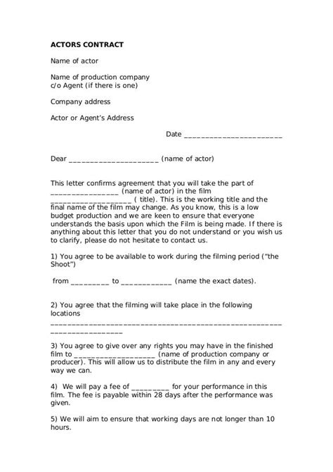 Ad make your free legal documents. When you need film actor agreement, don't. Web actor contract is an agreement between different parties that’s meant to be enforceable by law if the agreement is broken. Designed for private & commercial events. Web get your online template and fill it in using progressive features. Web free performance contract answer a few simple questions print and download instantly it takes just 5 minutes is the performer a solo artist or a group? Feel all the advantages of. Ad edit & print your free actor agreement template. Enjoy smart fillable fields and interactivity. Create a free indy account go to the contracts tools and click “create a contract” select. Web free actor employment agreement this actor employment agreement is between a producer and an actor who will appear in a motion picture.