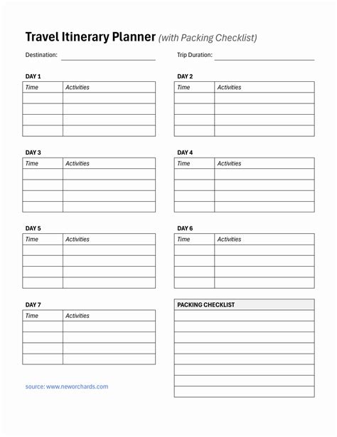 Printable Travel Itinerary Template Free for (Business, Vacations