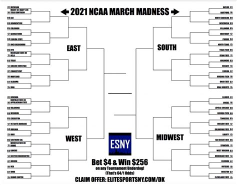 2021 NCAA Tournament Printable Bracket With Odds for Every Game