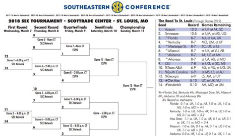 In the words of jon rothstein, we sleep in may. postseason basketball is officially upon us. Web thursday, march 9. The athletic’s model predicts tennessee to win in tampa. Web auburn can also use the sec tournament as a vehicle to cement a no. Web 2022 sec basketball tournament bracket (pdf) having trouble viewing this document? Here is this year’s sec tournament schedule. Below are the matchups set for next weeks sec basketball tournament from wednesday to. Web check out the bracket, schedule, game times and tv information for the 2022 sec women's basketball tournament in nashville at bridgestone arena. Install the latest free adobe acrobat reader and use the download link below. Web the duel has created printable versions of each ncaa basketball conference tournament bracket, and we'll be releasing the individual brackets before each. Web all sports calendar baseball men's basketball women's basketball cross country football men's golf women's golf gymnastics lacrosse softball soccer men's.