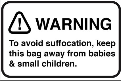 Plastic Bag Suffocation Warning / Safety Labels / Stickers. White label