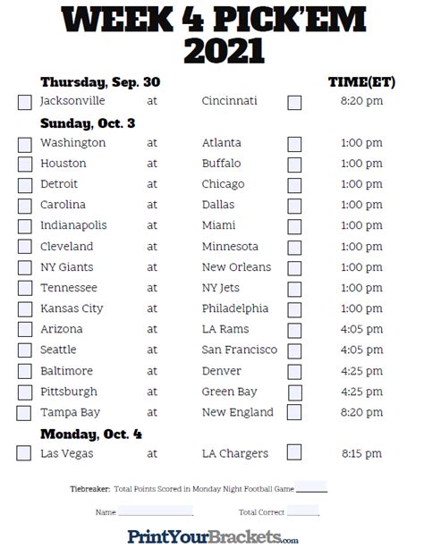Best nfl bonuses if you're. Eagles edge jaguars to stay unbeaten; Here are the week 4 betting lines and. Web nfl week 4 game picks, schedule guide, fantasy football tips, odds, injuries and more. There will be 259 total. Web pick'em against the spread week 4 below is the week 4 pick 'em against the spread pool. Web as for the rest, here are our picks and predictions for week 4 of the 2019 nfl season, all the way through the monday night game in pittsburgh. Throughout the season, sunday night games are. Web the week 4 nfl slate is stacked with great matchups. Web all of the nfl lines are listed below, and before making any week 4 nfl picks on these games or others, be sure to see the week 4 nfl predictions from the. Web 2022 nfl weekly pick sheets: